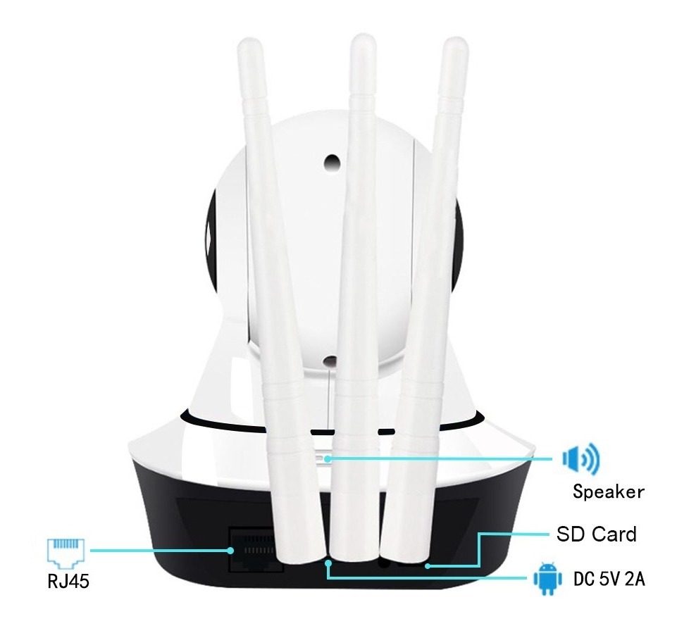 La cámara WiFi Smart 3 antenas combina tecnología avanzada con practicidad para garantizarte un sistema de seguridad confiable y accesible. Su diseño con tres antenas le brinda una conexión WiFi más potente y estable, evitando cortes en la transmisión y asegurando una vigilancia constante.