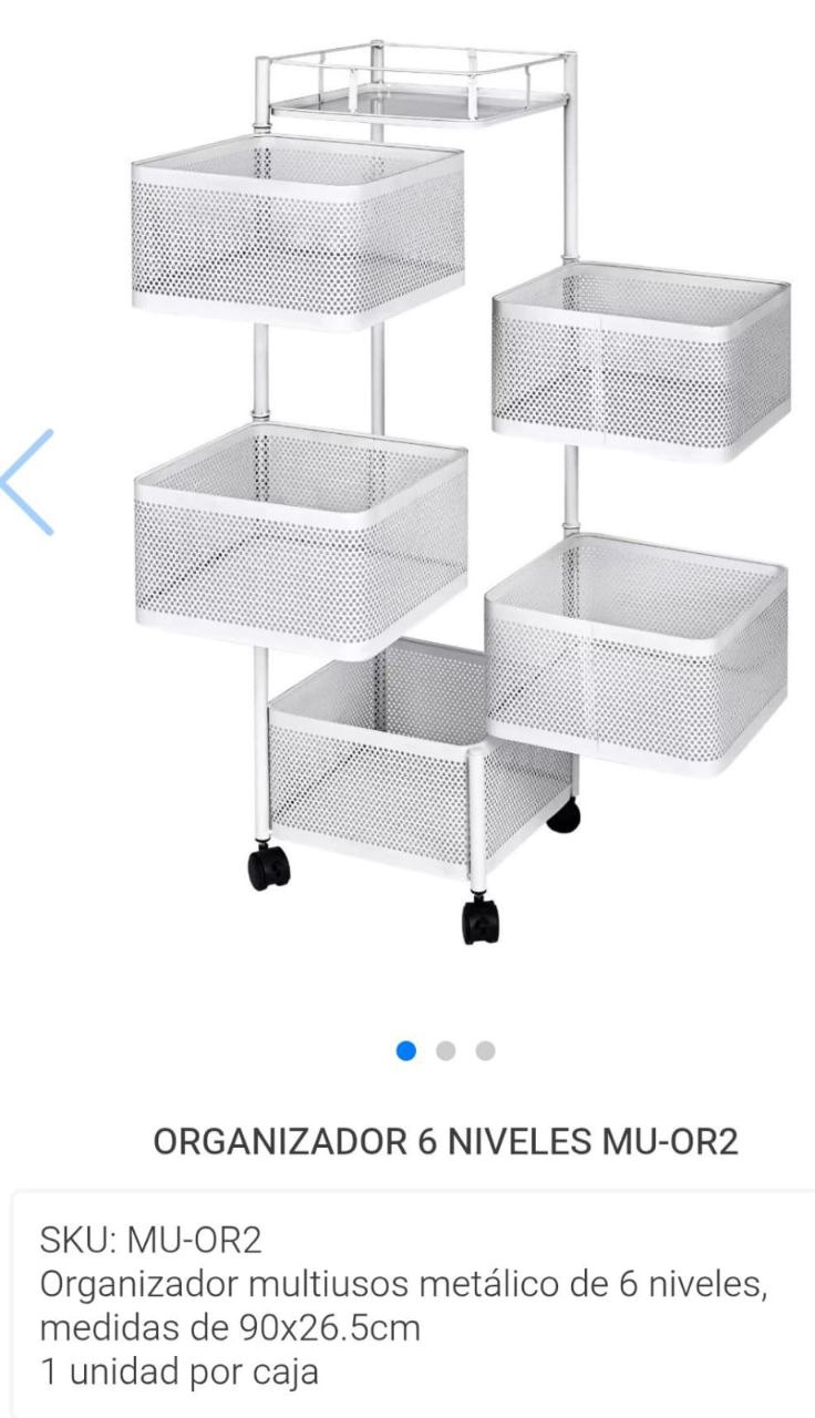 El Organizador 6 niveles MU-OR2 está diseñado para quienes buscan aprovechar mejor el espacio y mantener cada cosa en su lugar. Gracias a sus 6 compartimientos amplios y resistentes, es ideal para organizar ropa, accesorios, zapatos, artículos de limpieza, productos de cocina o cualquier objeto que desees tener siempre a la mano y en orden.