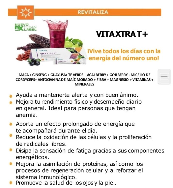 Beneficios principales de Vita Xtra T Fuxion: